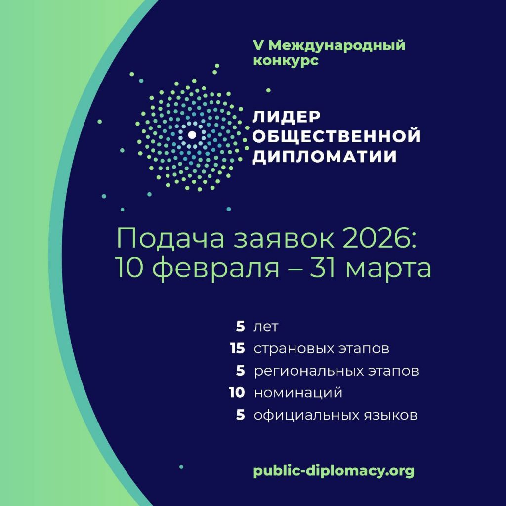 Открыт приём заявок на V Международный конкурс «Лидер общественной дипломатии».Цель конкурса