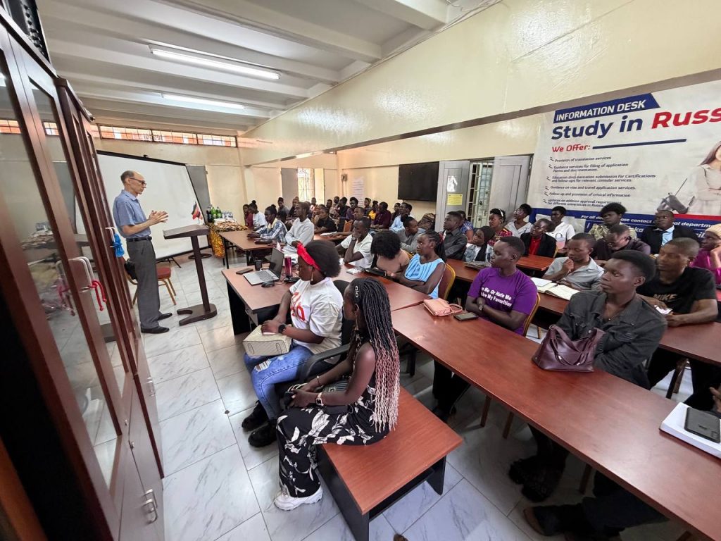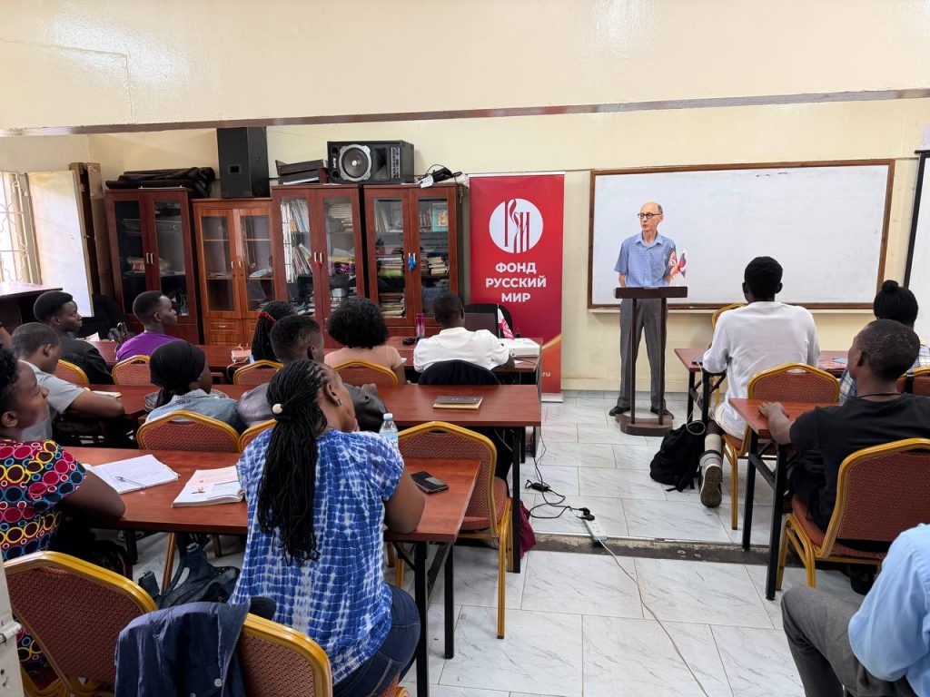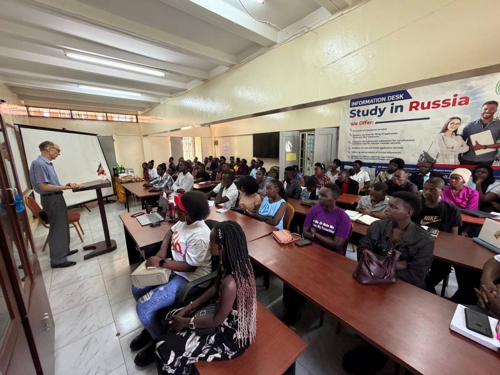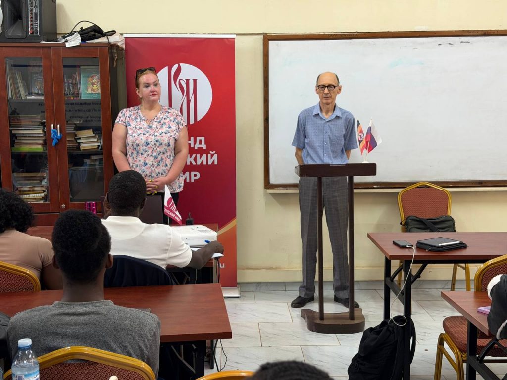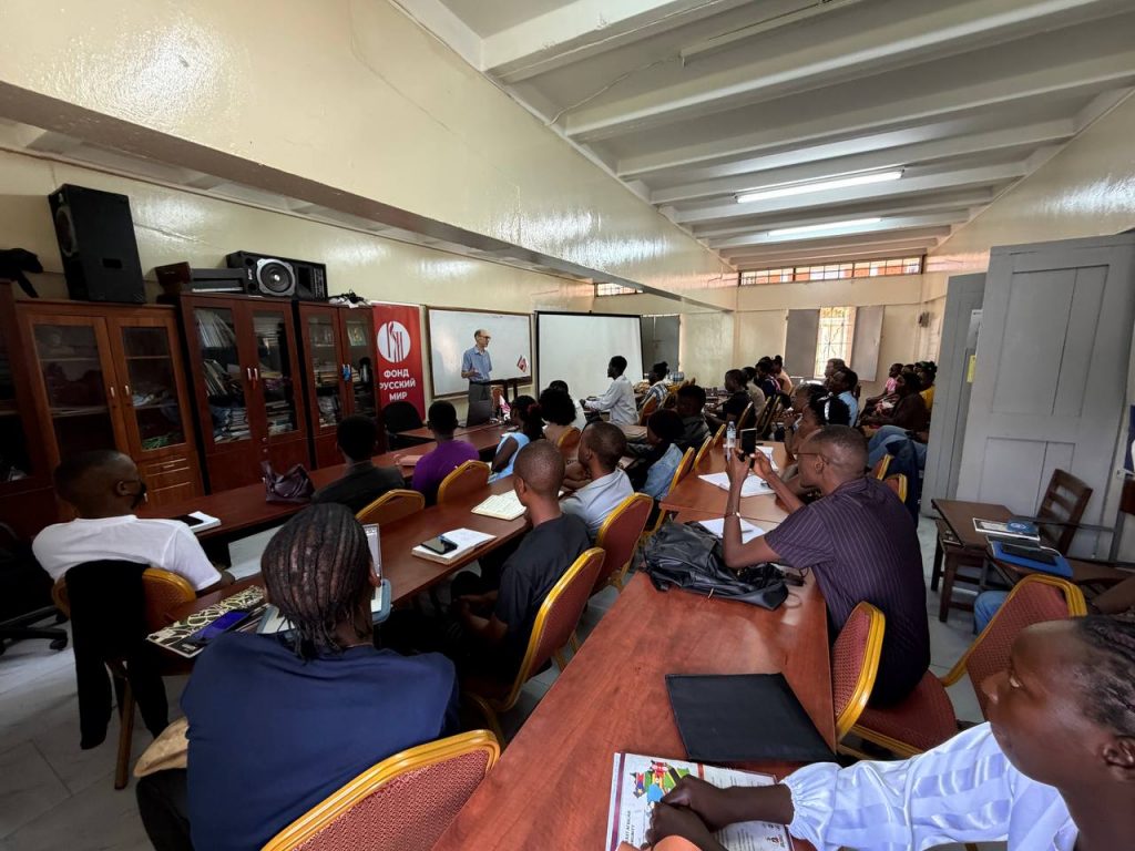 14 февраля 2026 года в центре Фонда «Русский мир» на территории Государственного университета Макерере прошло два мероприятия: ребята прослушали лекцию о дипломатии, приуроченную ко дню дипломата 10 февраля, и лекцию о профессии дипломата в целом. Студенты узнали, где можно обучиться навыкам: в каких университетах можно получить дипломатические профессии, и, смогли задать тематические вопросы представителю посольства РФ, Лобанову Сергею Васильевичу.