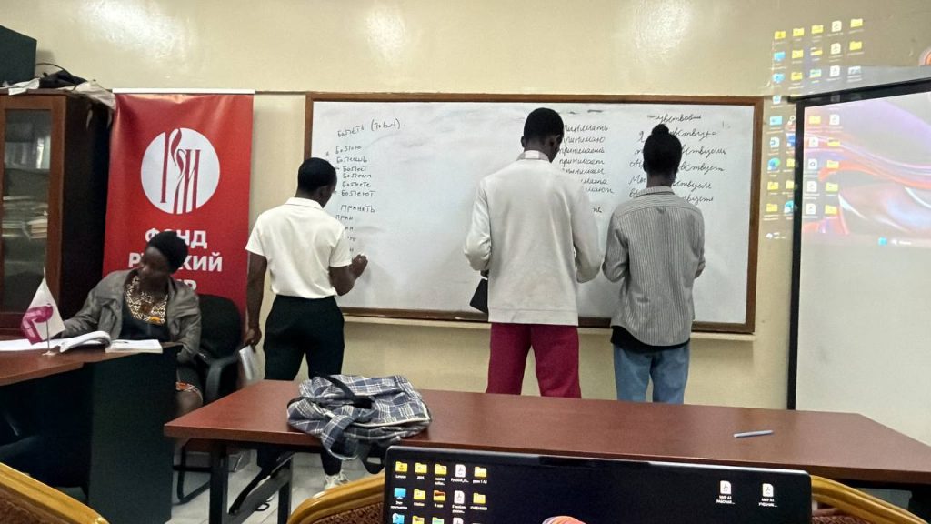 В кабинете фонда «Русский мир» проходятROSINKA UgandaMarch 2, 2026обновления новостей В кабинете фонда «Русский мир» проходят ежедневные занятия по изучению русского языка на уровне а1 и а2.